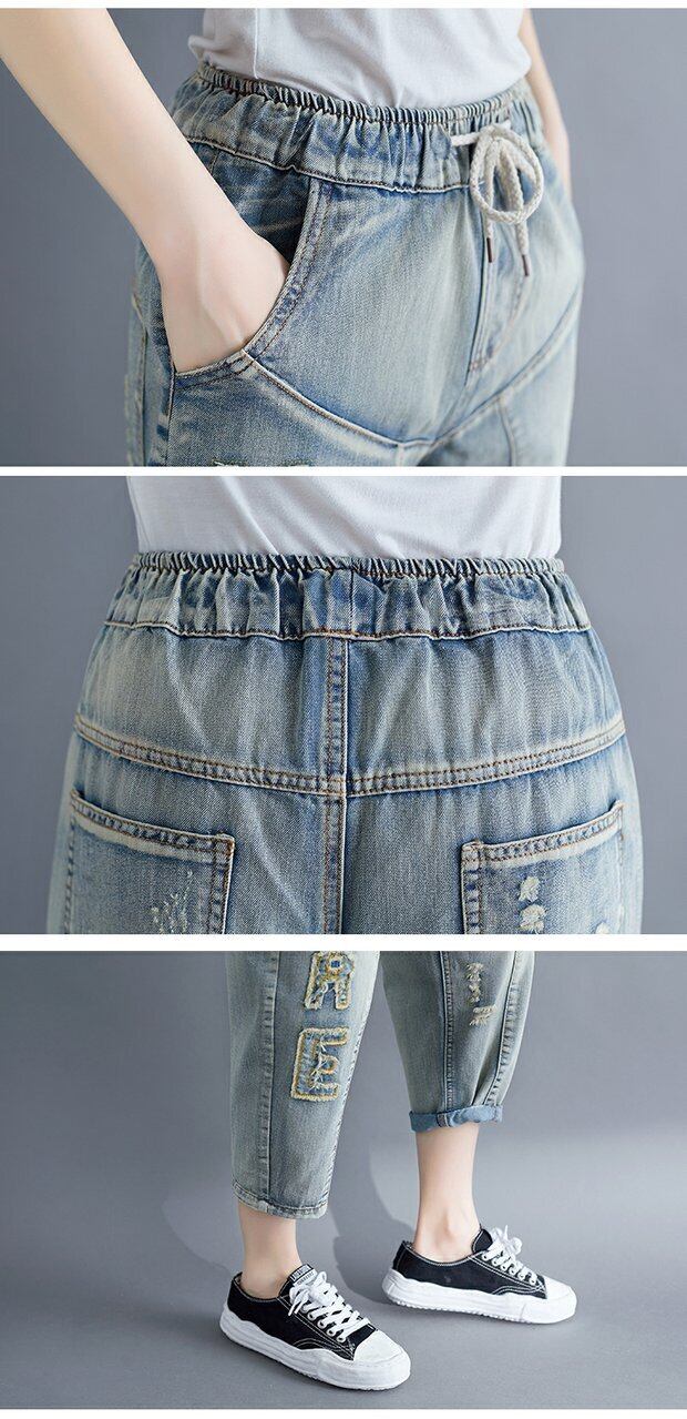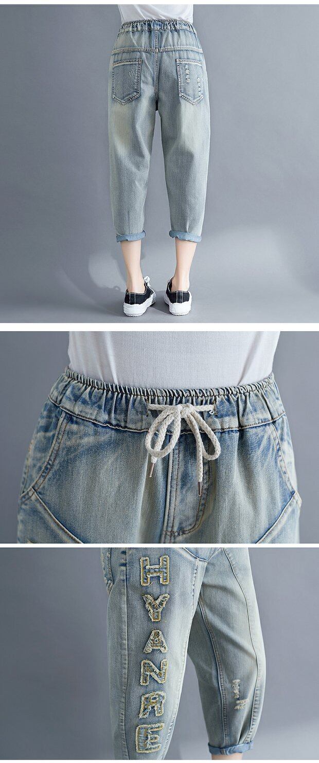 プラスサイズの女性の太った姉妹の夏バージョンの穴クロップドパンツ文学文字刺繡ジーンズハーラン女性のパンツ 刺繍 大きめサイズ サマー 夏物 TB2-8 TB2-863090068608