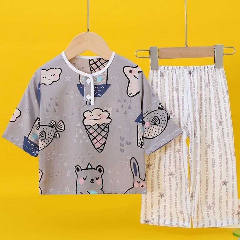 夏の綿シルク唐スーツ子供用パジャマスーツ男の子赤ちゃん綿シルク長袖ズボンプルオーバー薄いエアコン付きホームサービス ロング コットン サマー 夏物 TB2-5 TB2-513829830785