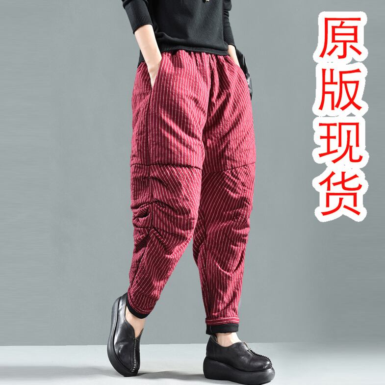 冬のストライプの厚いコットンリネンルーズプラスコットンバギーパンツ、しわのあるコットンパンツ、レトロなハーレムパンツキルティングブルマ ウィンター 冬物 ショーツ ブルマー TB2-11 TB2-1196082901542
