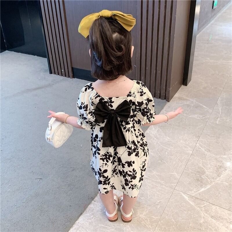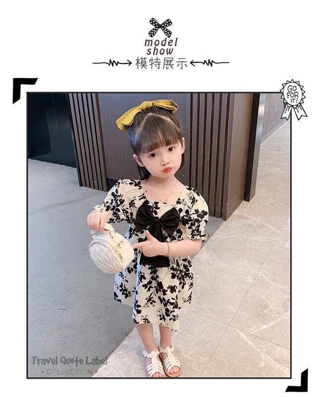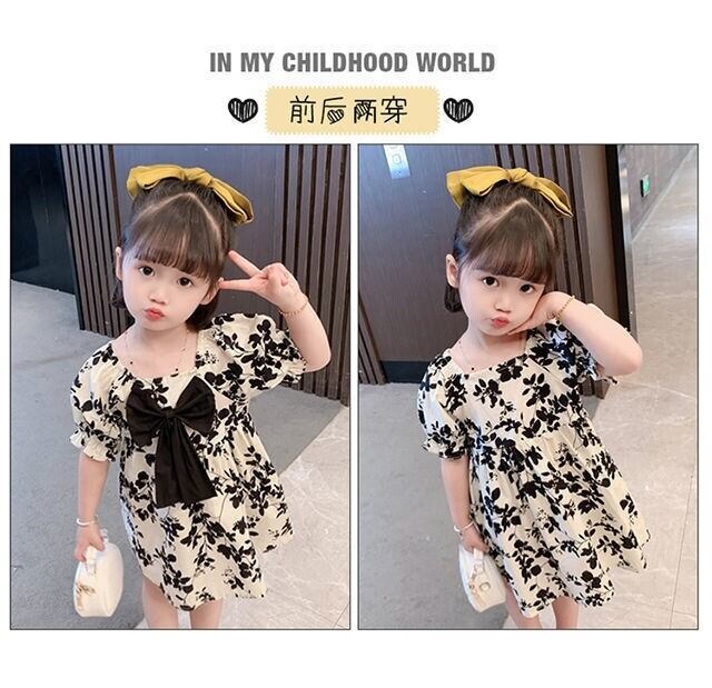 女の子のドレスサマーパフスリーブ子供スクエアネックフローラルスカートベビーエインスタイルハイウエストコットンプリンセスドレスタイド ハイウェスト 夏物 花柄 スクウェア TB2-5 TB2-519040188720