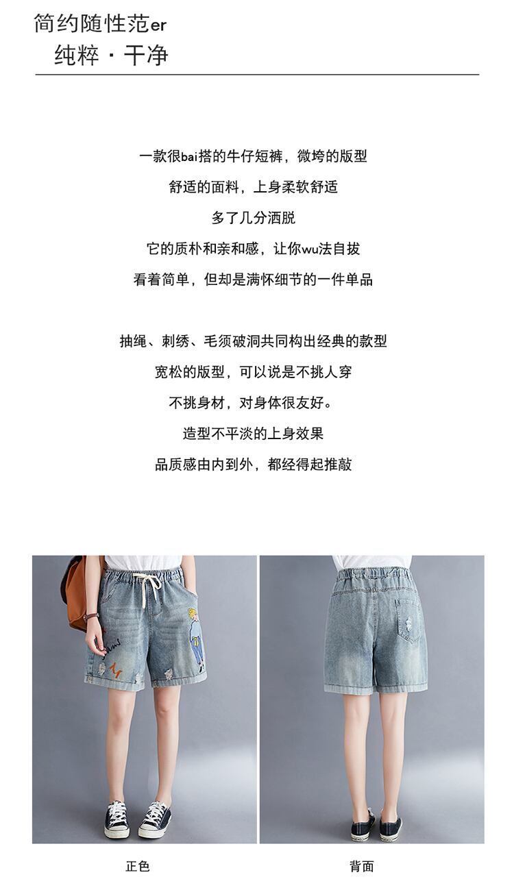 ファットシスターパンツサマールーズラージサイズワイドレッグパンツ穴漫画刺繍伸縮性ウエストネクタイデニムショートパンツ女性 エラスティック 大きめサイズ 夏物 ショーツ ブルマー ワイドパンツ TB2-8 TB2-857625098924