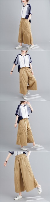 ラージサイズカジュアルオーバーオールレディースルーズ&シンファットシスターmm伸縮性ウエスト9点ワイドレッグパンツサマーニュースタイル2021 エラスティック 大きめサイズ 夏物 TB2-224256318588