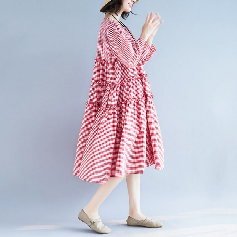 おなかの太いお姉さんプラスサイズドレス年齢減りチベット肉洋風2021年春新ミドル丈チェック柄が薄かった 大きめサイズ スプリング 春物 TB2-225089907642