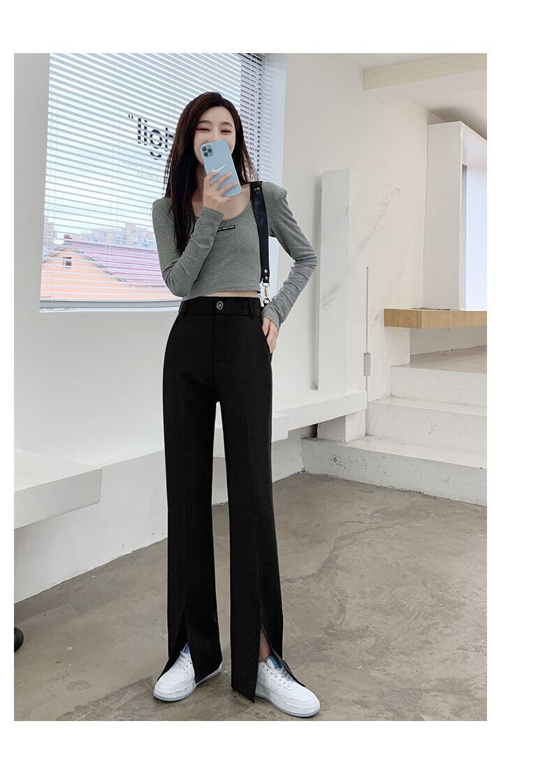 スリットスーツパンツレディースパンツ春秋ルーズストレートハイウエストドレープスリットフロアモップスプリットシフォンワイドレッグパンツ春夏 ハイウェスト スプリング 春物 サマー 夏物 オータム 秋物 TM2-5 TM2-529011265577