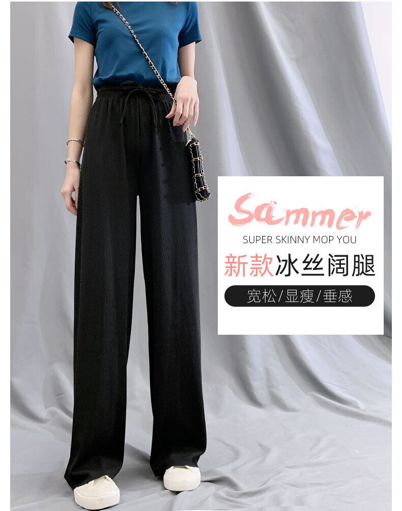アイスシルクワイドレッグパンツレディースパンツハイウエストドレープ春夏薄手ルーズストレートレッグ薄手カジュアルモップピンクパンツ ハイウェスト スプリング 春物 サマー 夏物 TM2-5 TM2-583703073837