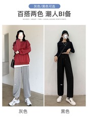 グレーのスウェットパンツの女性は足を緩め、ハイストリートの夏のワイドレッグストレートの細いカジュアルな春と秋のパンツ スプリング 春物 サマー 夏物 オータム 秋物 TM2-5 TM2-513857868671