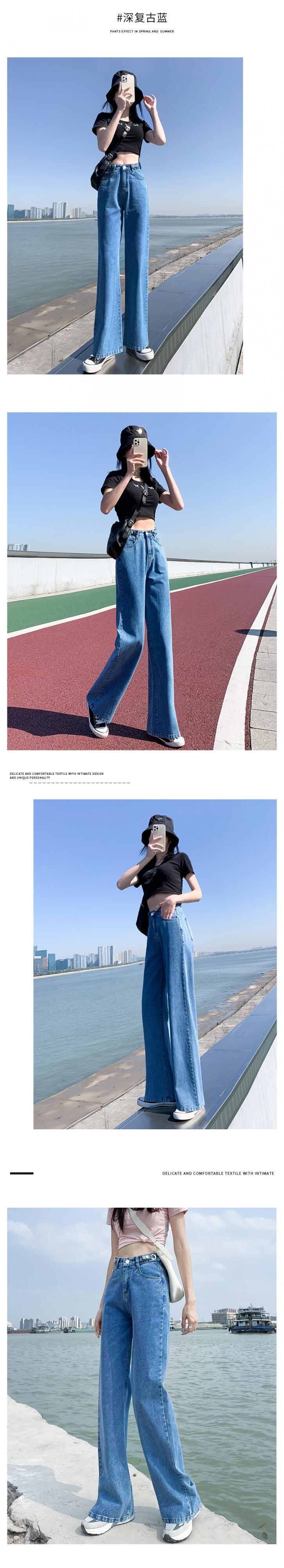 -ウエストジーンズレディースパンツ、サマーシン、ストレート、ルーズ、シン、ドレープ、伸縮性ウエスト、サマーワイドレッグパンツ エラスティック 夏物 TM2-5 TM2-532193436099