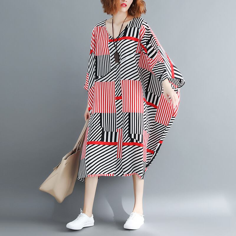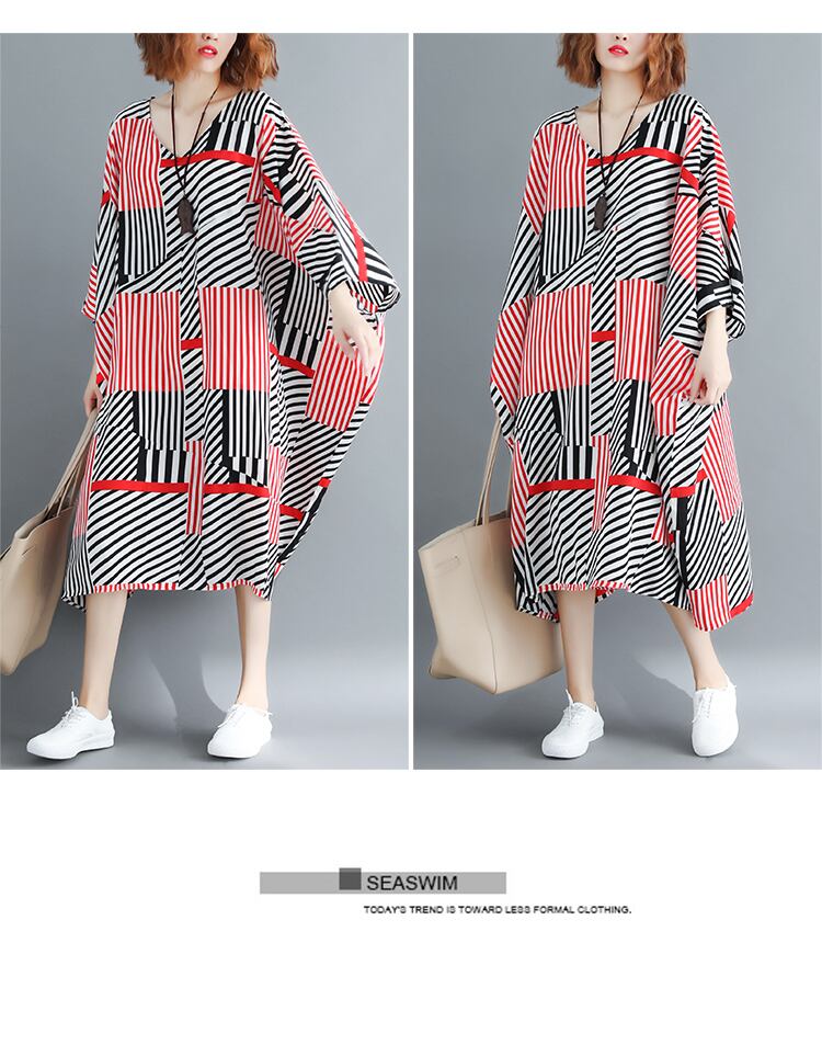 洋風プラスサイズレディースファットシスターストライプワンピース200kgサマースカートルーズVネック薄手の膝丈スカート 大きめサイズ 夏物 TB2-8 TB2-846404136294