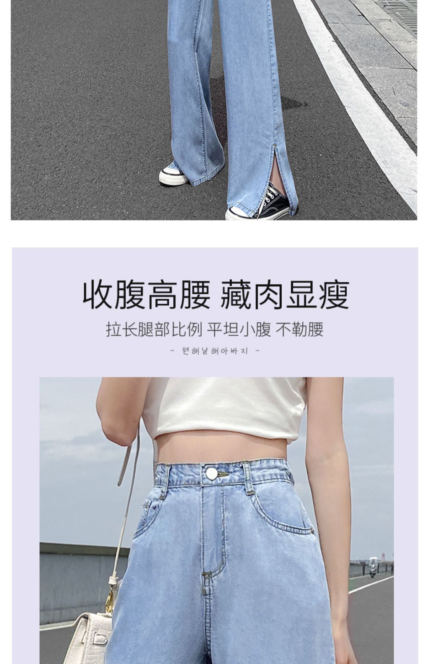 スプリットテンセルジーンズレディースパンツサマーシンハイウエストドレープストレートルーズ超薄型二股アイスシルクワイドレッグパンツ ハイウェスト 夏物 TM2-5 TM2-535597473254