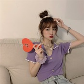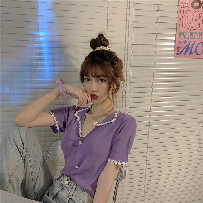 アイスシルクニット半袖VネックTシャツ女性インタイドネットセレブ爆発デザインニッチハイウエストbmショートトップ TB2 TB283546096060