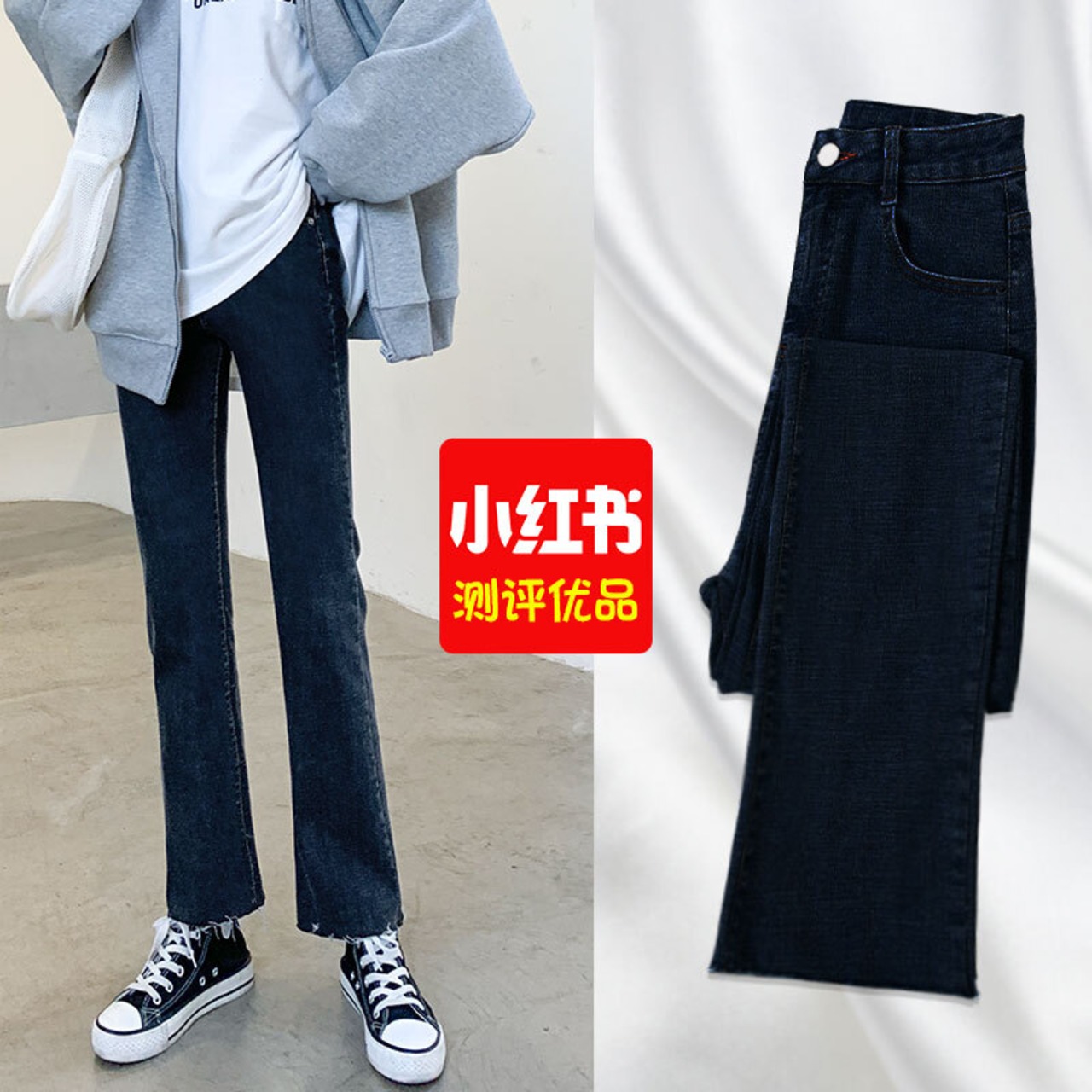 マイクロフレアジーンズレディースパンツサマーシンルーズルーズストレートシック香港フレーバー春秋ハイウエストスリムクロップドパンツ ハイウェスト レッド スプリング 春物 夏物 オータム 秋物 TM2-5 TM2-576702936296