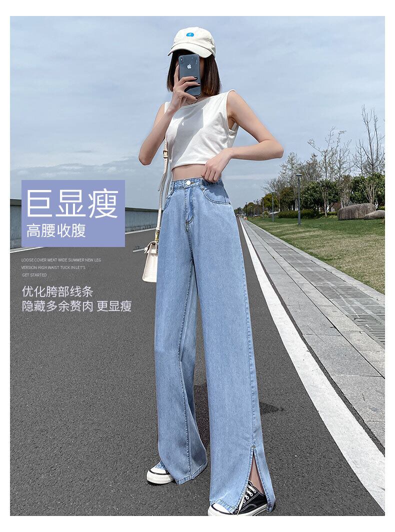 テンセルジーンズレディースパンツスプリットサマーシンルースストレートハイウエストドレープモップサマーアイスシルクワイドレッグパンツ ハイウェスト 夏物 TM2-5 TM2-587871944444