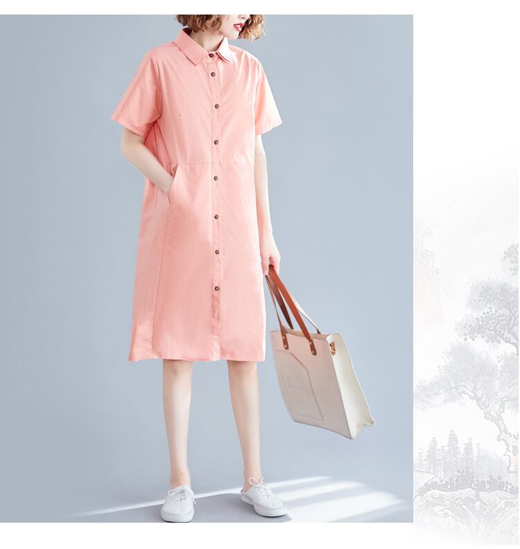 大きいサイズの半袖ドレス女性の太った姉妹mmルーズポロカラーシングルブレストシャツスカート女性の夏の新しいスタイル2021 大きめサイズ サマー 夏物 TB2-215602459929