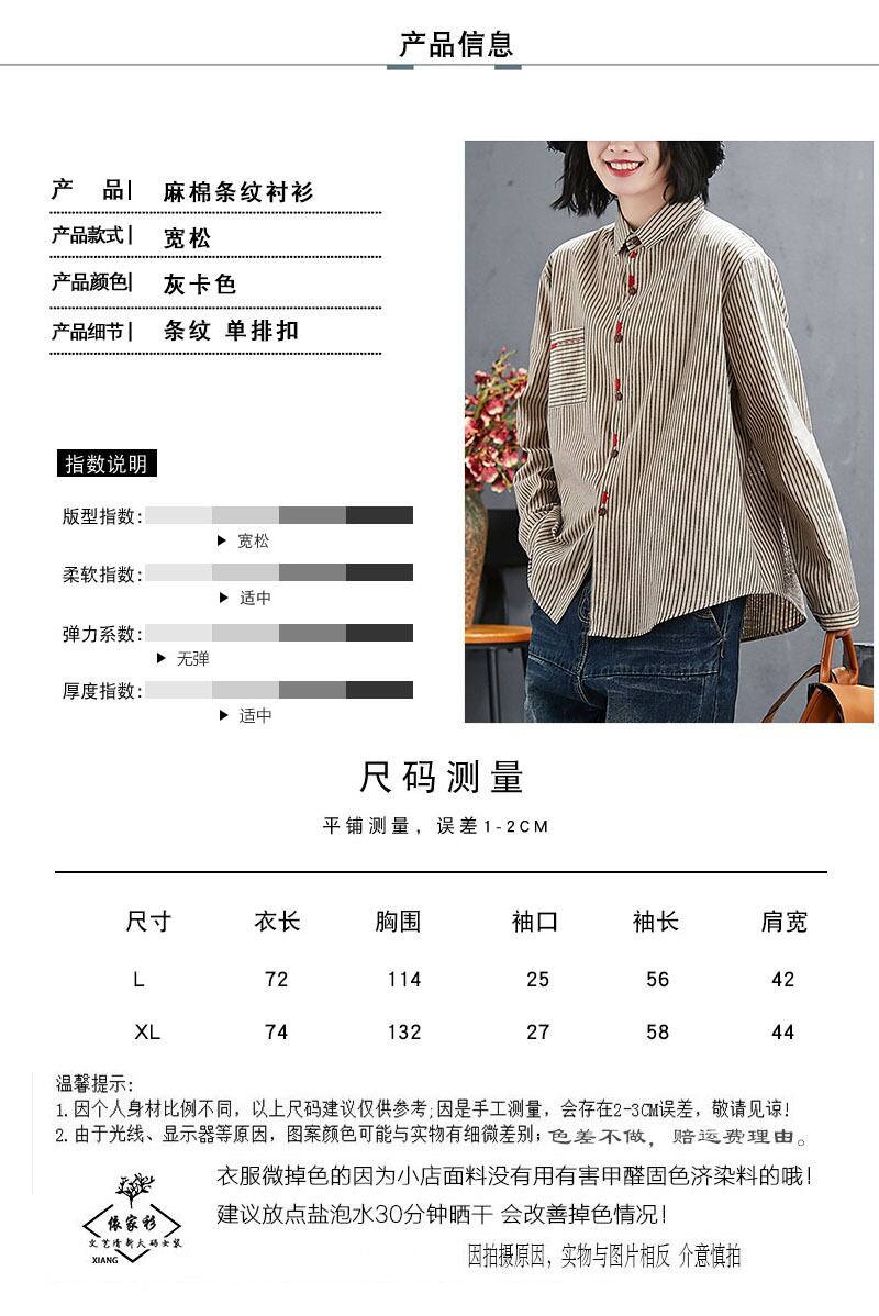 2020年春秋新作プラスサイズレディースシャツレディース長袖ルーズストライプリテラリーコットンリネンカジュアルシャツ ロング 大きめサイズ スプリング 春物 オータム 秋物 TB2-11 TB2-1115982185666