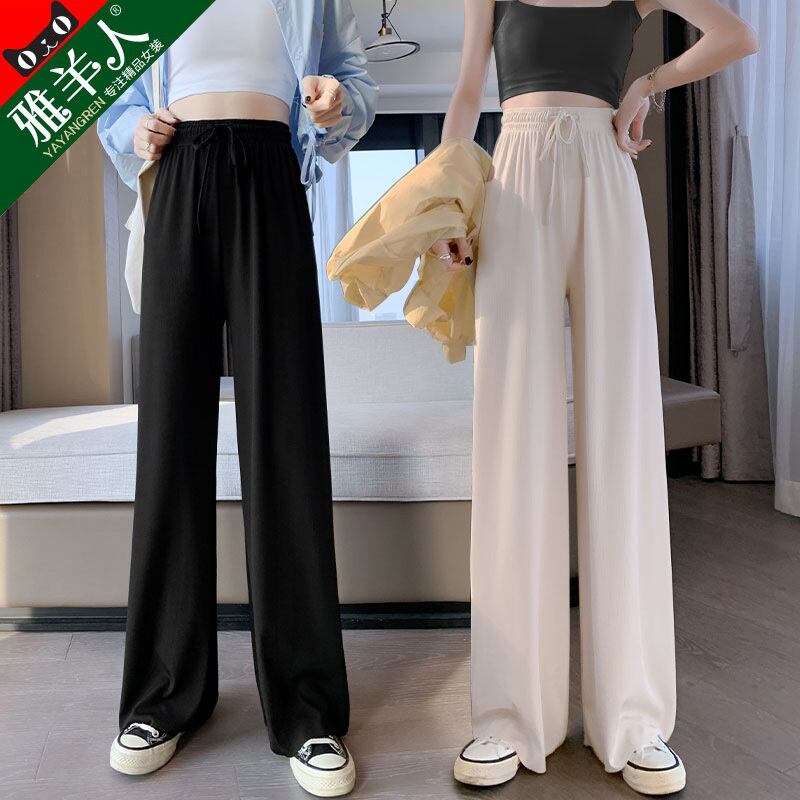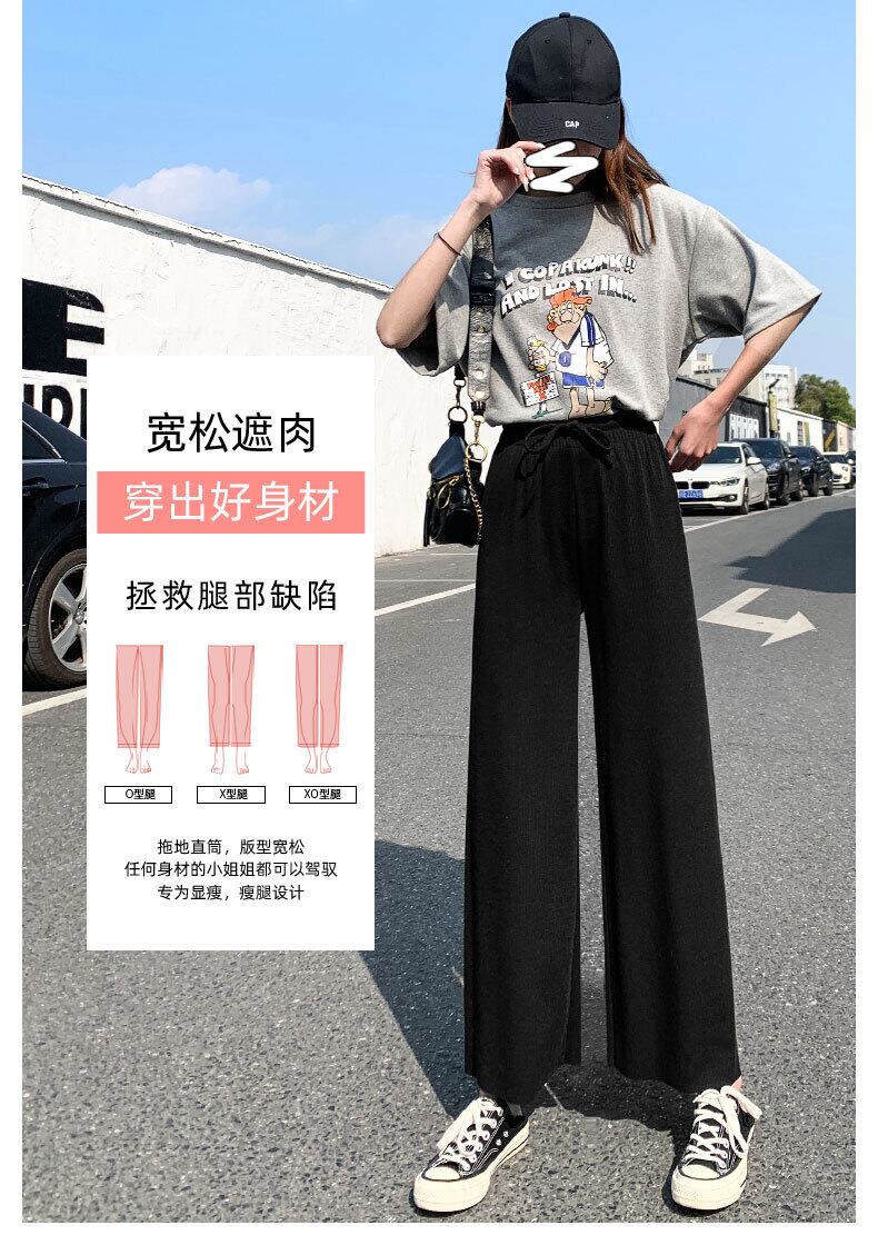アイスシルクパンツレディースサマー薄片ルーズストレートブラックサマーモップフェアリーカジュアルハイウエストドレープワイドレッグパンツ ハイウェスト 夏物 TM2-5 TM2-517360266569
