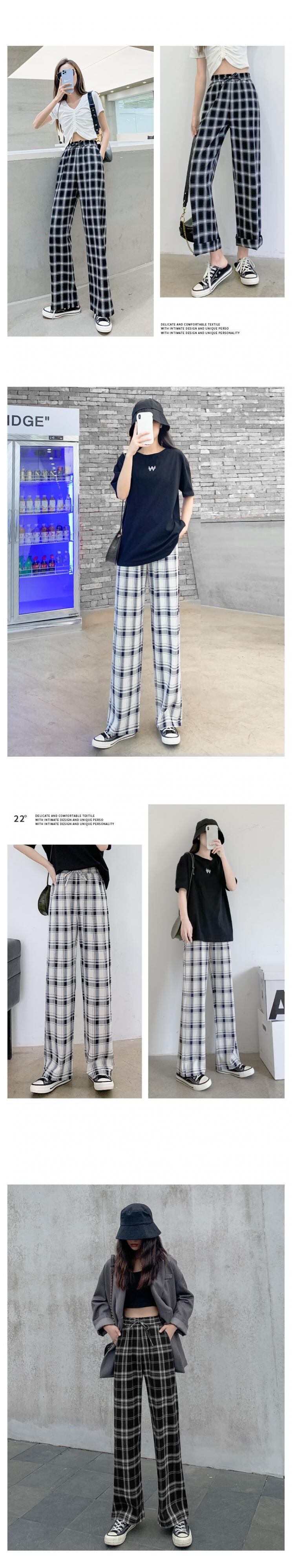 黒と白のチェック柄パンツ女性夏の薄いルーズルーズストレートレッグ2021新しい春と秋のカジュアルハイウエストドレープワイドレッグパンツ ハイウェスト ホワイト ブラック スプリング 春物 サマー 夏物 オータム 秋物 ワイドパンツ TM2-5 TM2-557323734709