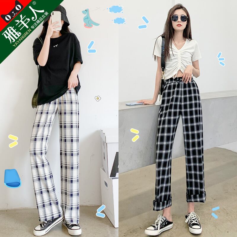 黒と白のチェック柄パンツ女性春、秋、夏ストレートルーズスタイルトレンド学生ハイウエストドレープカジュアルワイドレッグパンツ9点 ハイウェスト ホワイト ブラック スプリング 春物 サマー 夏物 オータム 秋物 TM2-5 TM2-594505043109