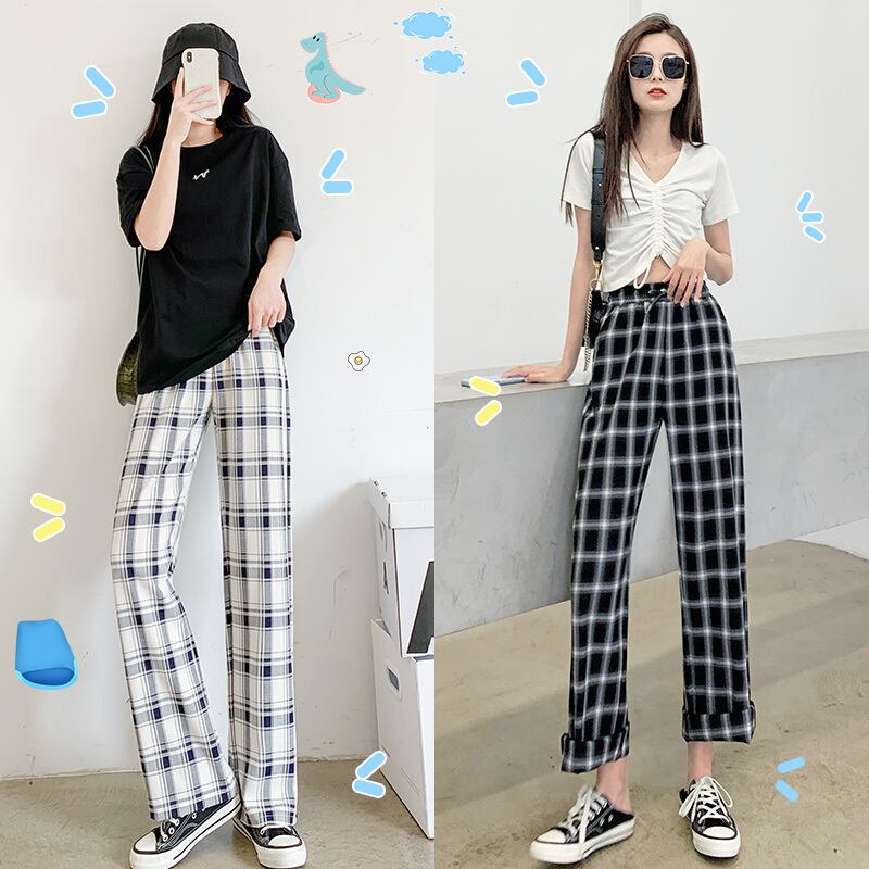 チェック柄パンツレディース2021年春秋新作ストレートルーズでシンカジュアルハイウエストドレープ春夏シンワイドレッグパンツ ハイウェスト スプリング 春物 サマー 夏物 オータム 秋物 TM2-5 TM2-5394258722