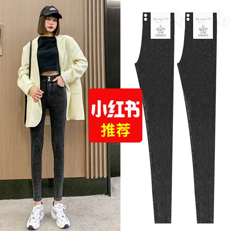 女性が夏、春、秋に着用する黒のレギンス、ハイウエスト、細く、ワイルドでタイトな足、伸縮性のある鉛筆、薄いマジックパンツ ハイウェスト ブラック エラスティック スプリング 春物 サマー 夏物 オータム 秋物 TM2-5 TM2-568168829964