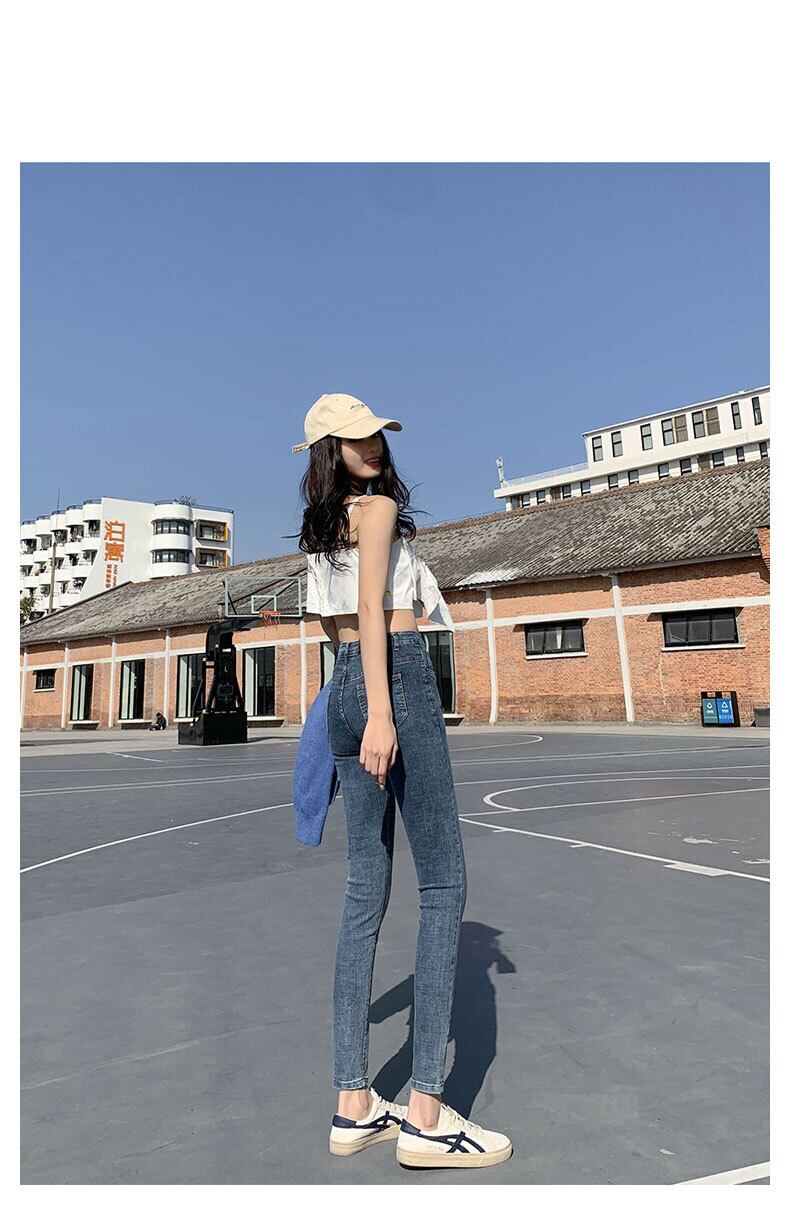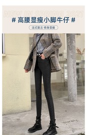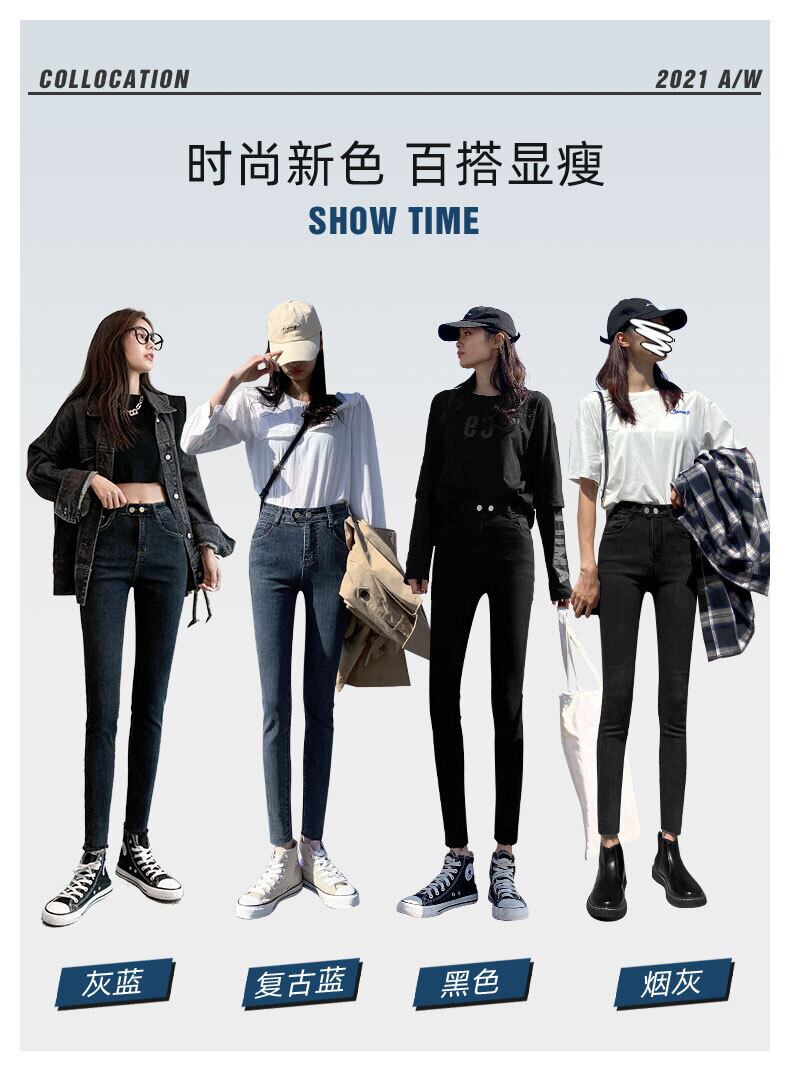 スモークグレーハイウエストジーンズレディースパンツ2021年春新夏薄手タイトフットブラック春秋ペンシル ハイウェスト スプリング 春物 サマー 夏物 オータム 秋物 TM2-5 TM2-590462677533