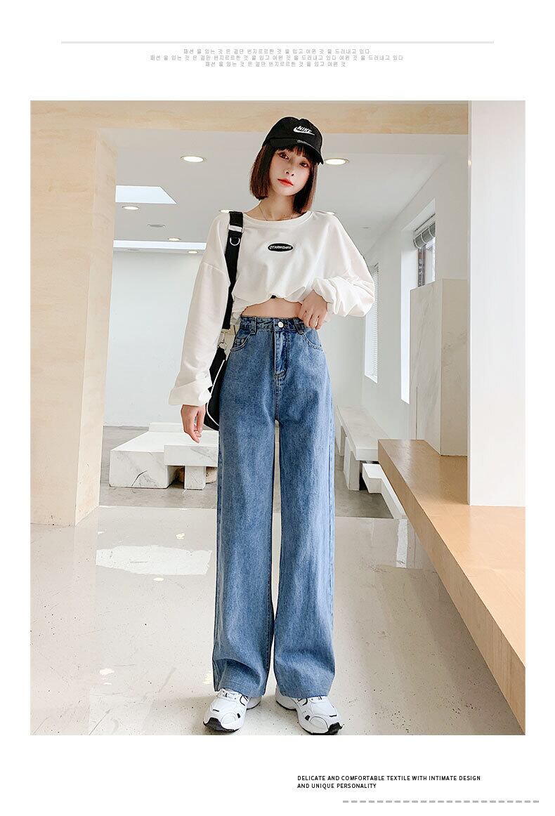 破れたジーンズの女性のズボン2021新しいルーズストレートレッグシンナー春と夏の薄いモップハイウエストワイドレッグパンツ ハイウェスト スプリング 春物 サマー 夏物 ワイドパンツ TM2-5 TM2-5786798705