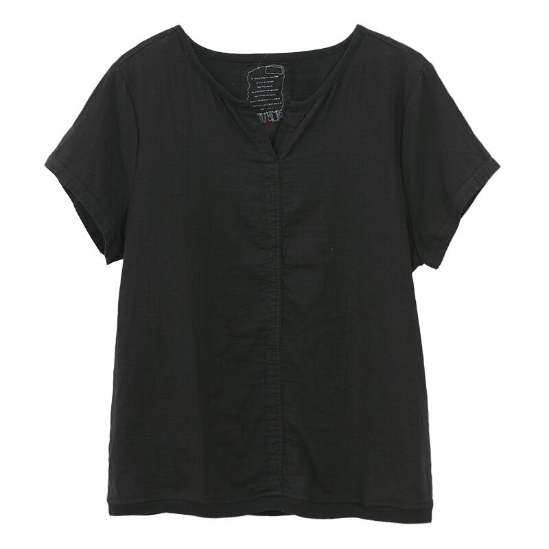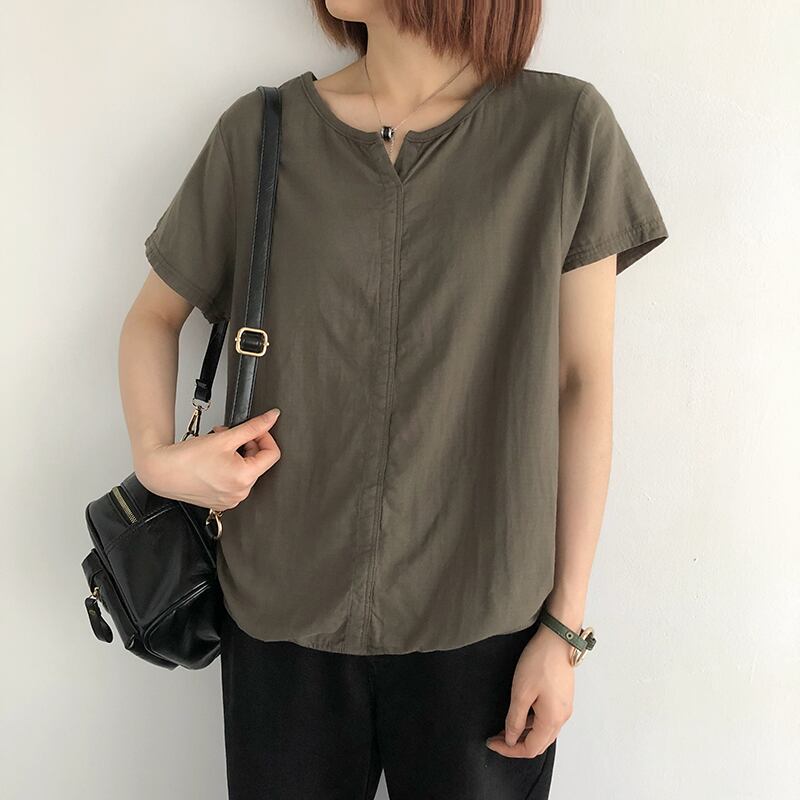 コットンとリネンの半袖TシャツレディースサマーニュールーズソリッドカラーVネックカジュアルジャケットバージョンのワイルドでシンプルなスリムTシャツ 夏物 TB2-9 TB2-95812777091