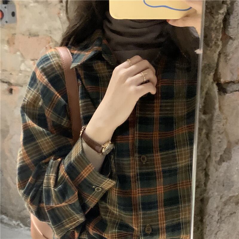 2021年春の新作チェック柄シャツレディースレトロ香港スタイルデザインセンスニッチトップススタッキングシャツジャケットトレンド スプリング 春物 TB2-15 TB2-1583991492741