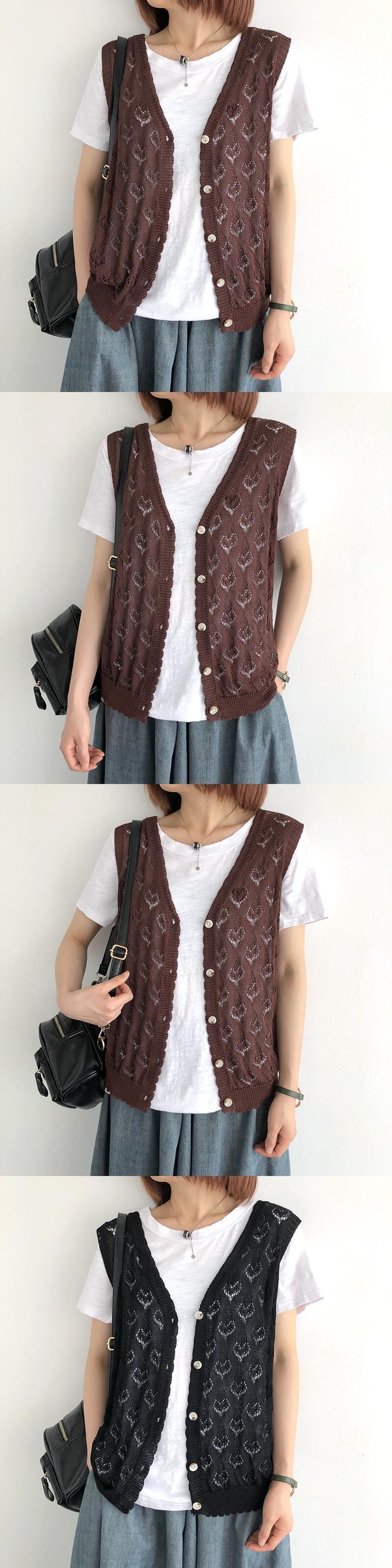 中空ニットベスト女性の夏の新しいスタイルのアウターウェア薄いノースリーブのベストトップルーズVネックチョッキカーディガントレンド サマー 夏物 TB2-9 TB2-986568303126