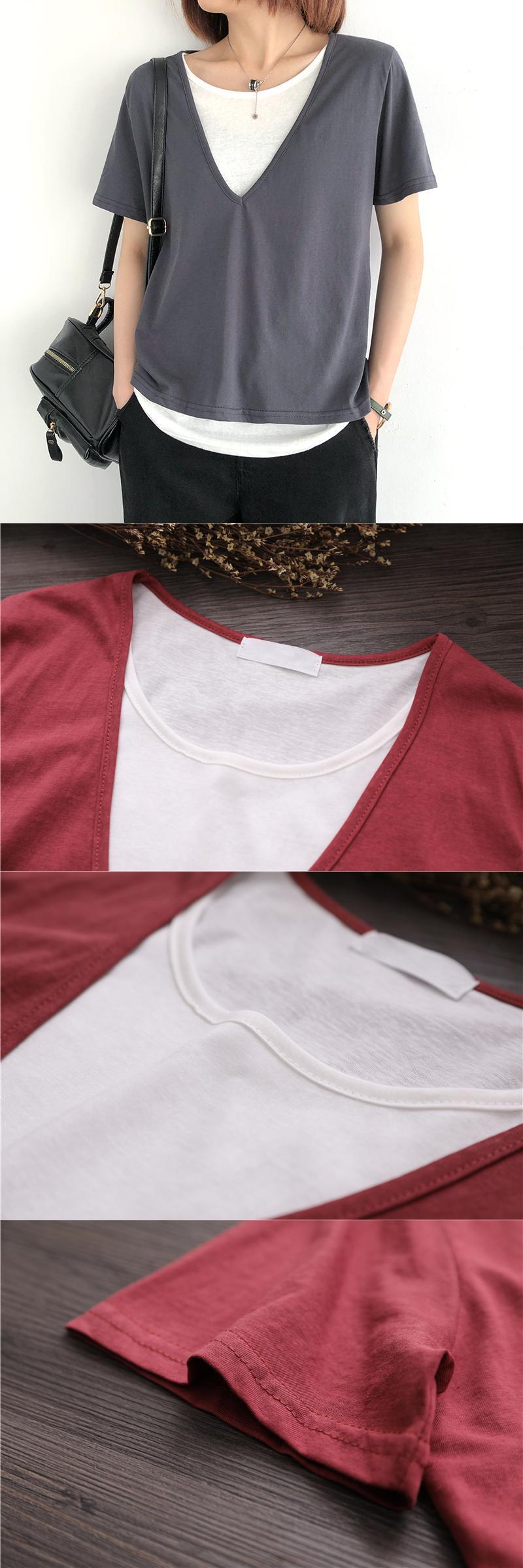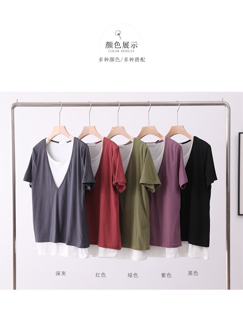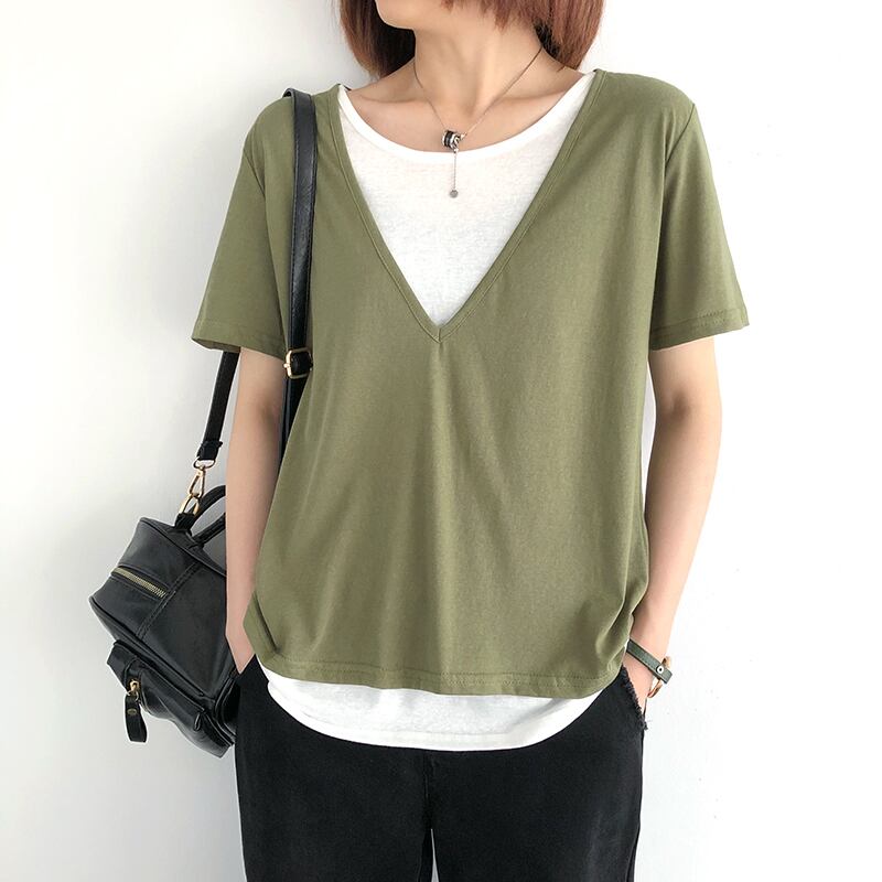 2021年新作文芸ルーズラウンドネックコットントップ半袖フェイクツーピースTシャツレディースサマーカジュアルボトミングシャツ 夏物 Oネック TB2-9 TB2-941921646099