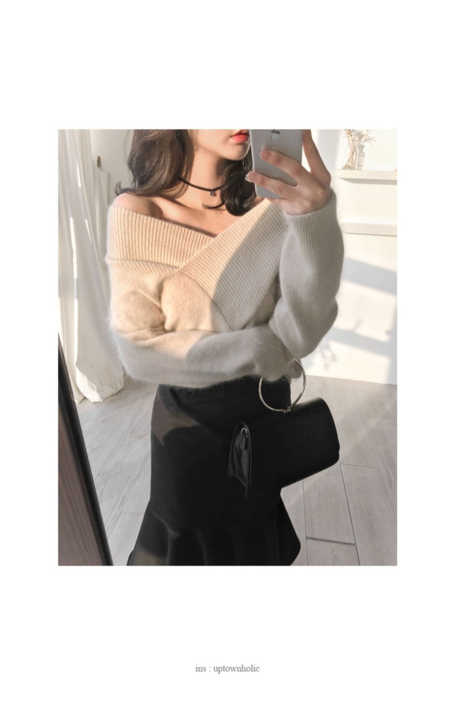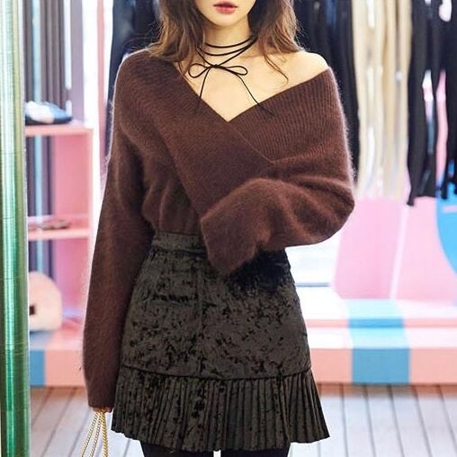 2020年秋冬の新しい怠惰な風のプルオーバーセクシーなクロスニットセーターオフショルダーオールマッチルーズフィットセーターの女性 オータム 秋物 ウィンター 冬物 TB2-15 TB2-1565725311826