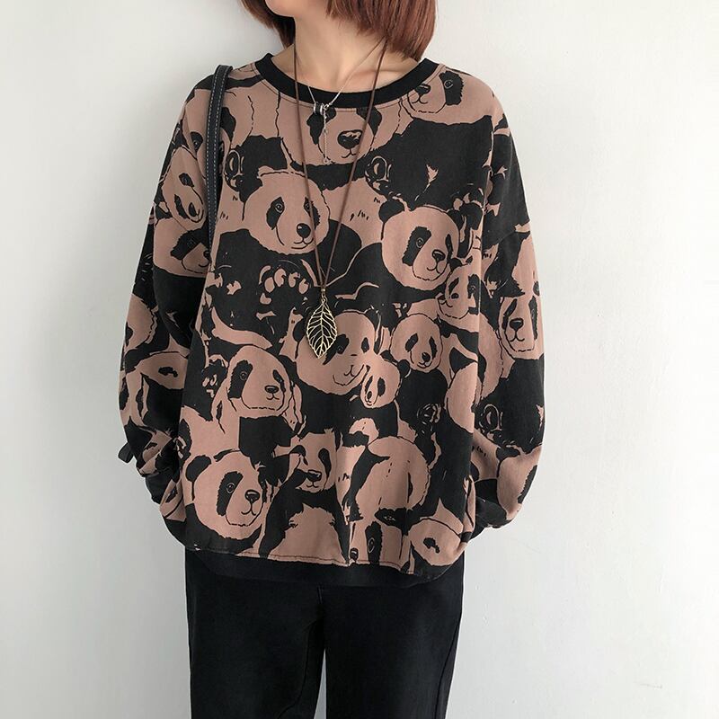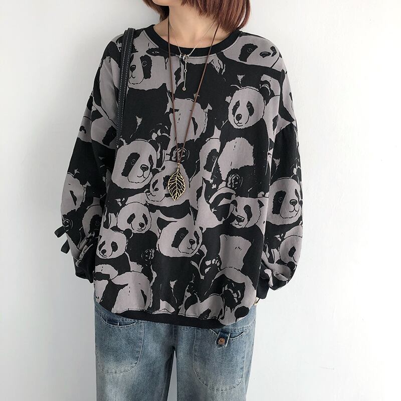 2021年春新しいルーズラージサイズカジュアル長袖シャツ文学レトロプリントラウンドネックリネンコットンTシャツ女性 ロング 大きめサイズ スプリング 春物 Oネック TB2-9 TB2-956978659461