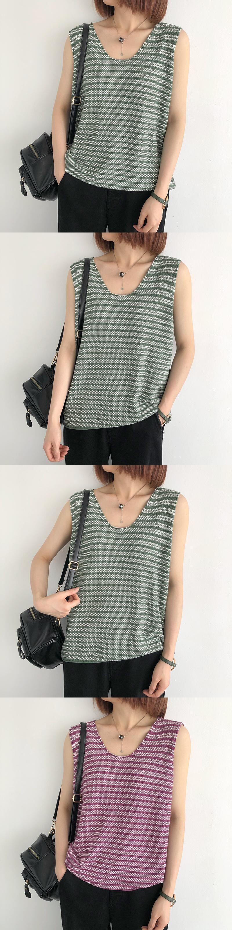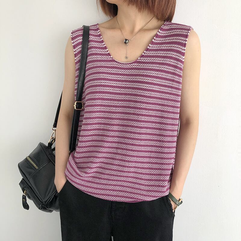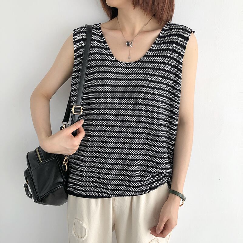 ストライプサスペンダートップレディースアウター夏新作ルーズラウンドネックI型ノースリーブニットベストショートインナー サマー 夏物 Oネック TB2-9 TB2-984931363495