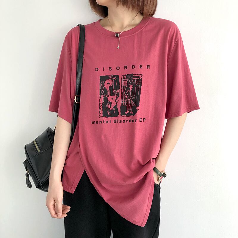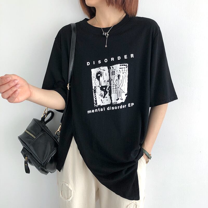 ミッドレングス半袖Tシャツ女性夏新作スタイルラウンドネックルーズイレギュラーコットントッププリントボトミングシャツ サマー 夏物 Oネック TB2-9 TB2-9257125383