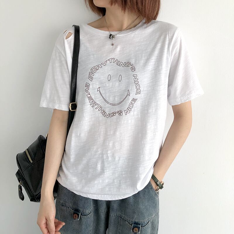 純綿半袖Tシャツ女性2021年新しいルーズラウンドネックスラブコットントップ文学レジャーボトミングシャツ夏 サマー 夏物 Oネック TB2-9 TB2-941275412315