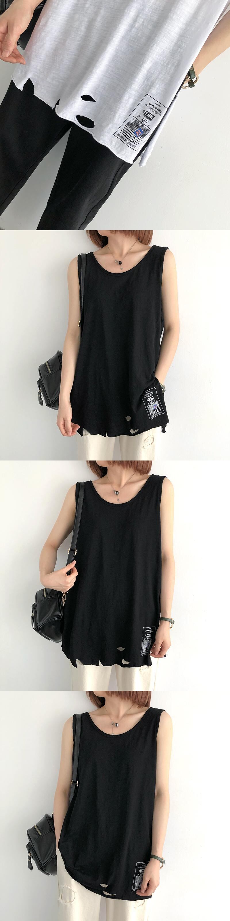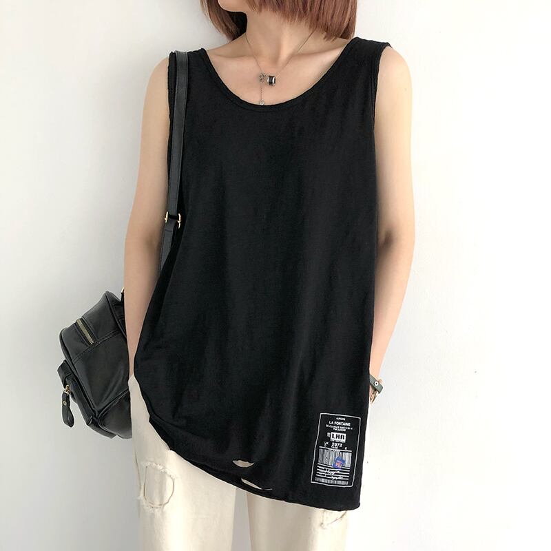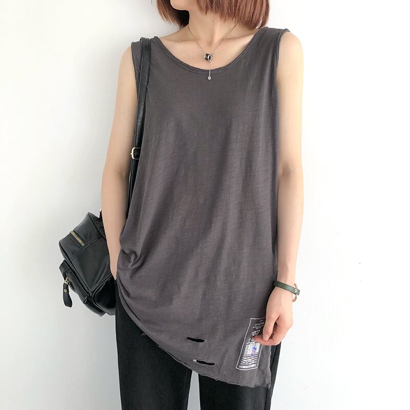スラブコットン破れたベスト女性の夏の新しいスタイルの文学的なルーズアウターウェアキャミソール薄いスタイルのインナーノースリーブトップタイド サマー 夏物 TB2-9 TB2-969658645027