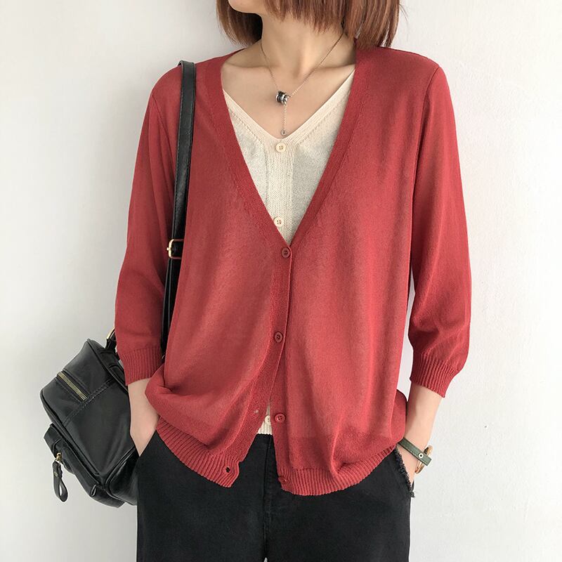 レディースニットジャケット夏新作文芸レトロルーズバージョン薄手ステッチVネックフェイクツーピースショートトップ サマー 夏物 TB2-9 TB2-943504689140