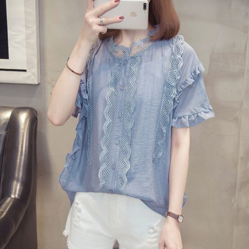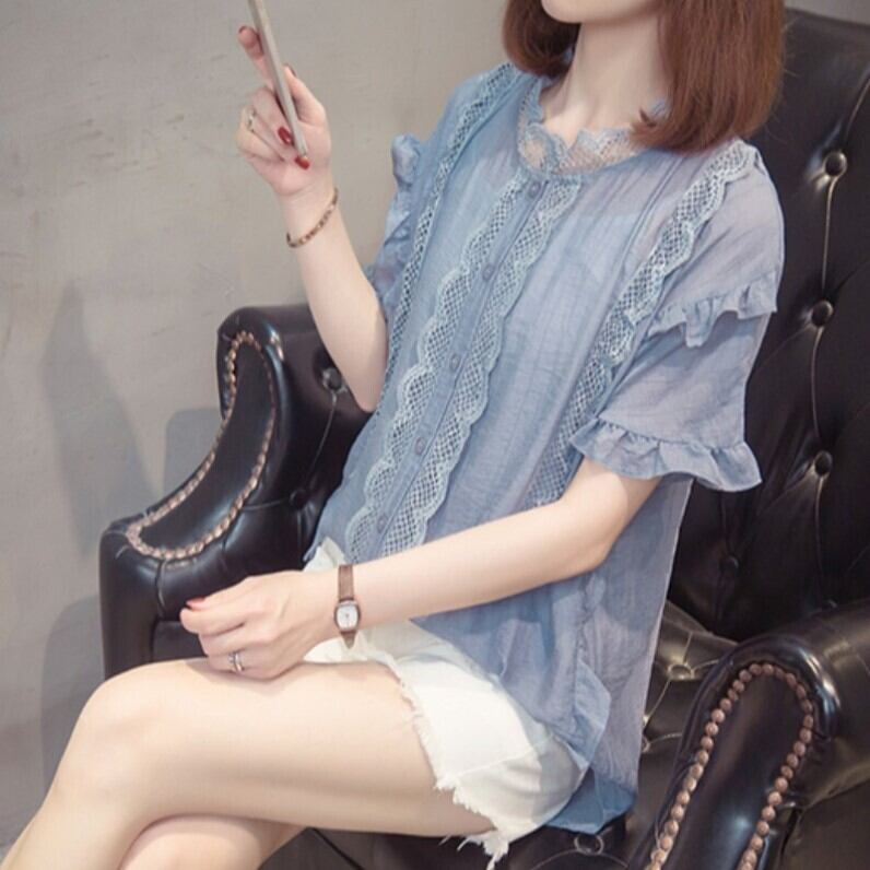 プラスサイズの女性の新しいオールマッチシャツ2021夏の太った姉妹200kgの単層レース半袖シャツ 大きめサイズ サマー 夏物 TB2-6 TB2-699725481839