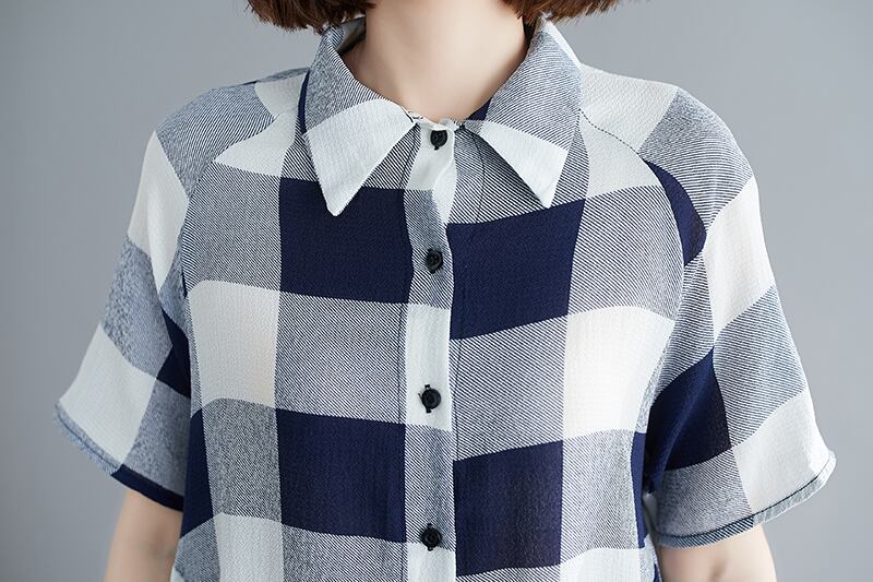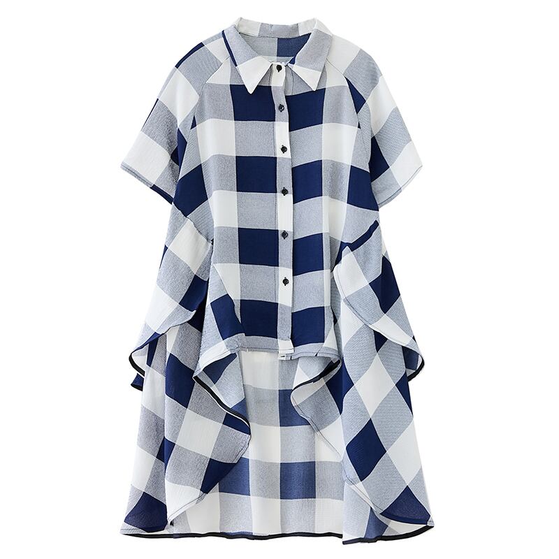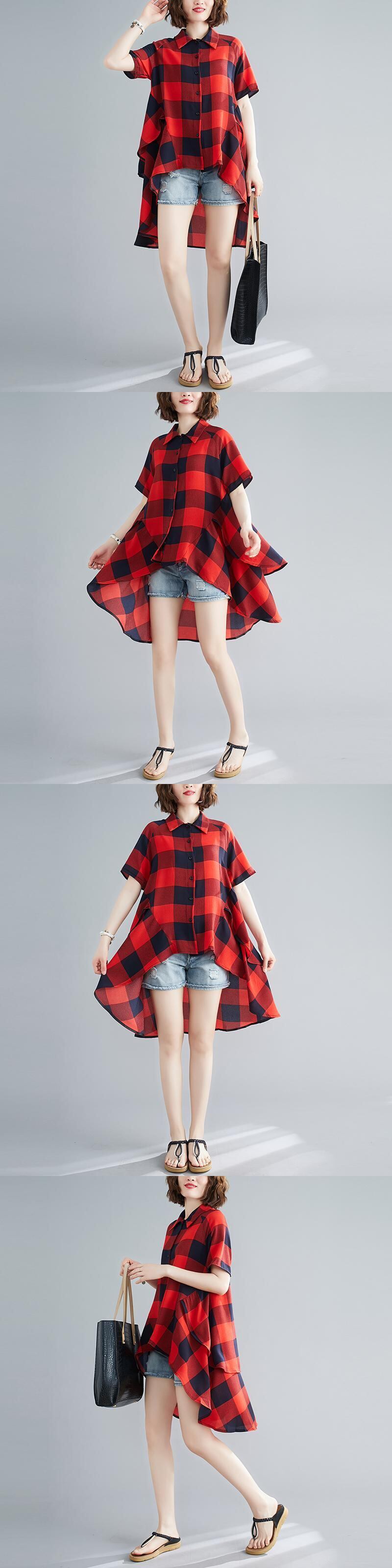 2021年アモイチェック柄半袖カーディガンフロントショートバックロングシャツリテラリールーズラージサイズファットmm ハーフスリーブ 大きめサイズ TB2-12 TB2-1297750880736