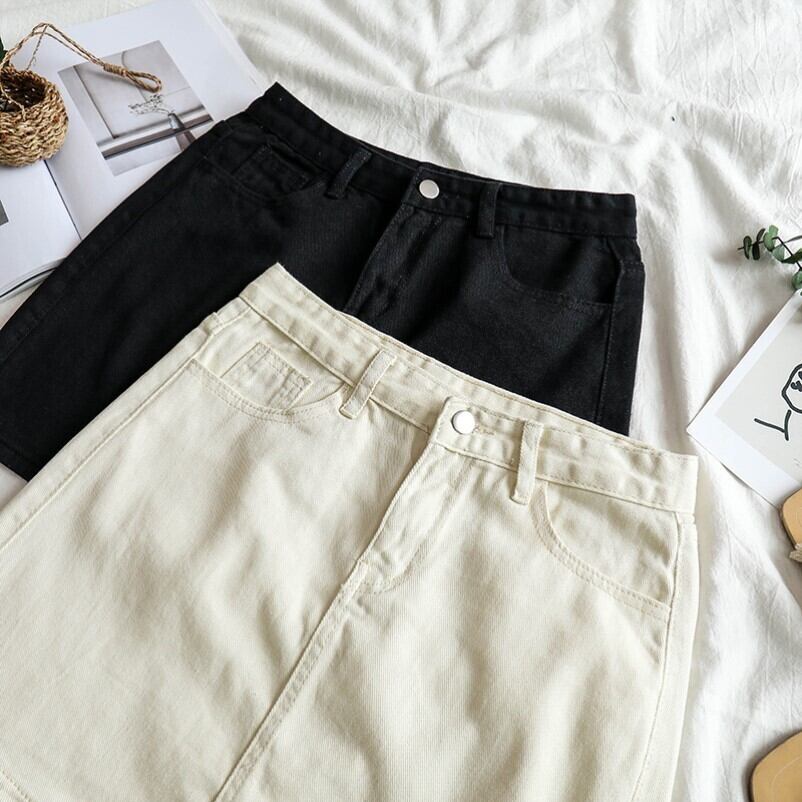 ブラックショートスカート女性2021年夏新作シンプル無地Aラインデニムスカートスチューデントオールマッチハイウエストバッグヒップスカート ハイウェスト サマー 夏物 ソリッドカラー TB2-6 TB2-645016817244