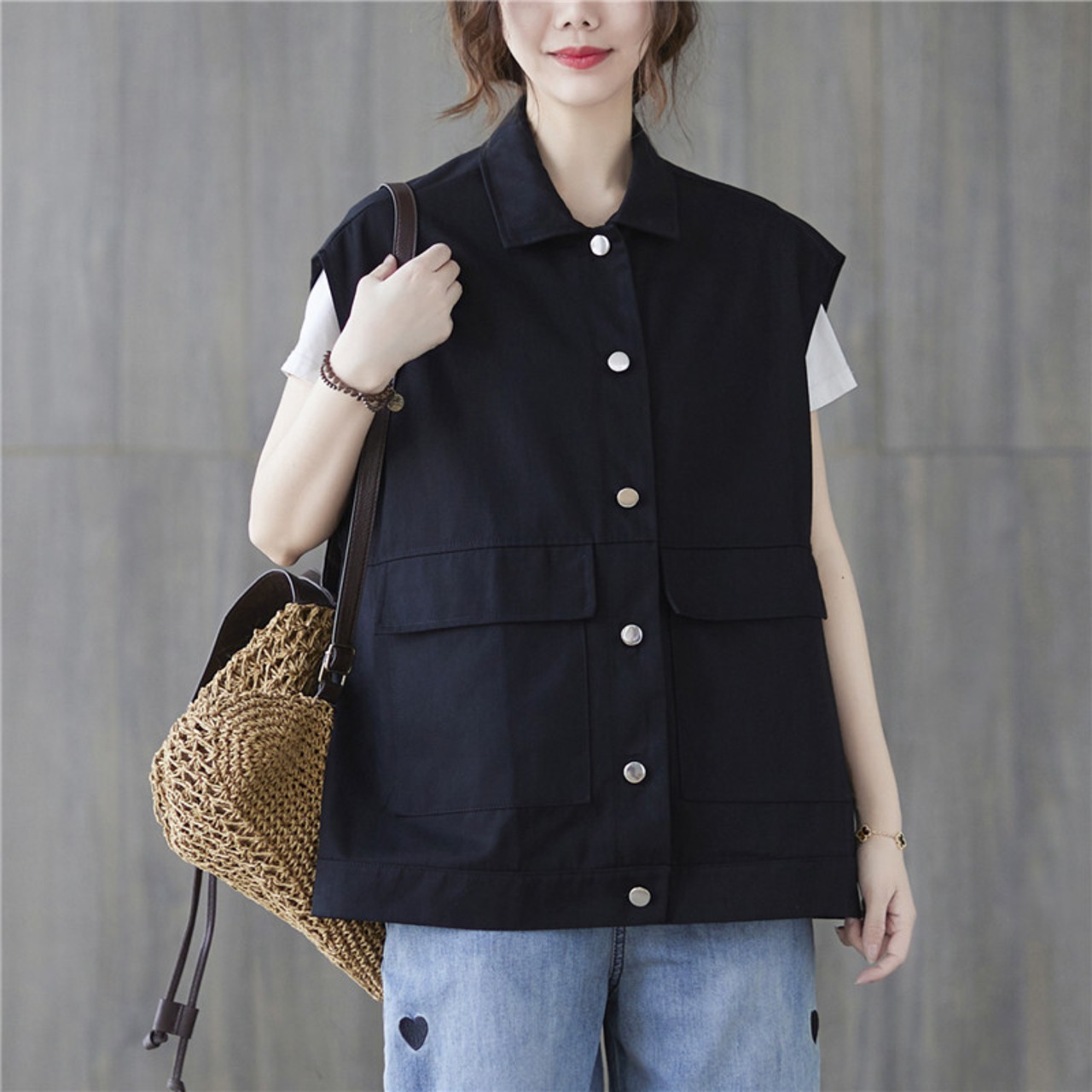 2021年夏の新しいスタイルのレトロな大型ツーリングベストジャケットの女性ルーズで薄いカジュアルジャケットの女性 大きめサイズ サマー 夏物 TB2-12 TB2-1221437510095