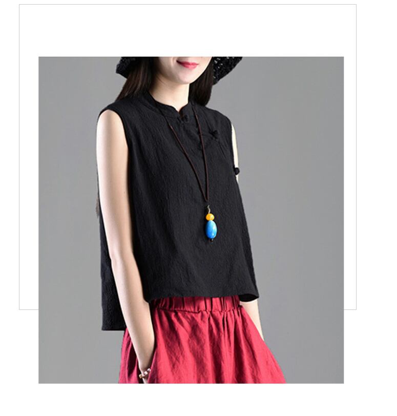 エスニックスタイルのレトロな文学とアートノースリーブの綿とリネンのTシャツ女性の夏のショートバックルボトミングシャツショートジャケットアウターベスト コットン サマー 夏物 TB2-11 TB2-1198484791584