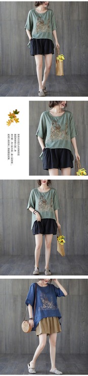 2021年夏の新しいスタイルのレトロな文芸刺繡リネンブラウス女性ルーズで薄い不規則なラウンドネック半袖Tシャツ 刺繍 サマー 夏物 Oネック TB2-12 TB2-1273529357434