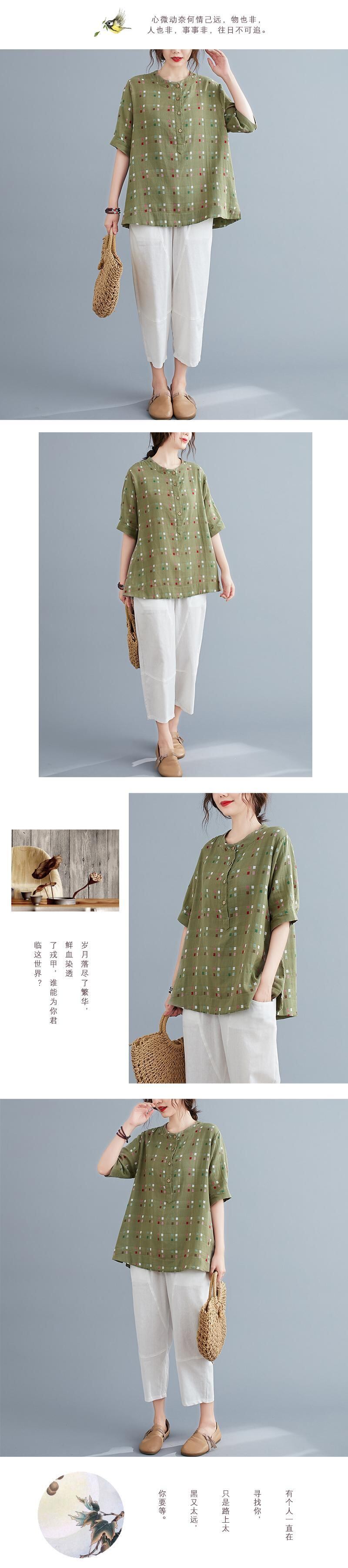 2021年夏の新しいスタイルの文学プラスサイズの純綿チェック柄半袖Tシャツ女性 コットン 大きめサイズ サマー 夏物 ピュア TB2-12 TB2-1278360417397