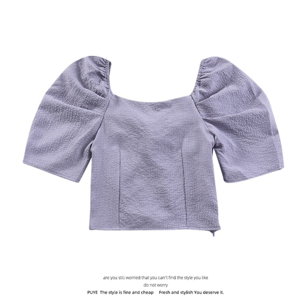 パープルパフスリーブシャツ女性夏デザインセンスニッチレトロショートシャツフレンチスクエアカラー半袖シフォントップス ハーフスリーブ サマー 夏物 スクウェア TB2-6 TB2-616028441859