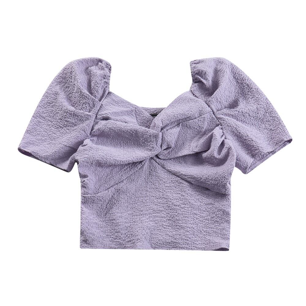 2021年夏の新しいスタイルのフレンチスクエアネックブラウス女性クラビクルデザインニッチシフォンシャツバブル半袖Tシャツ ショート ハーフスリーブ サマー 夏物 スクウェア TB2-6 TB2-63765513009
