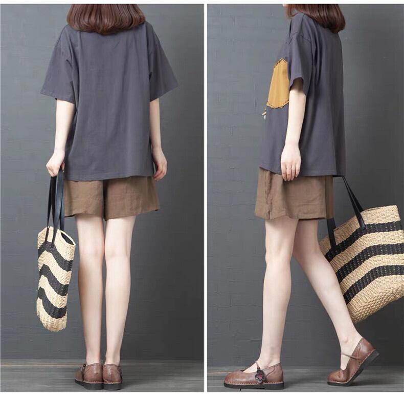 2021年アモイバージョンのルーズウエスタンスタイルラージサイズレディースシンプルカジュアルトレンディ半袖トップスTシャツショーツ女性スーツ 大きめサイズ ブルマー TB2-12 TB2-1262445913733