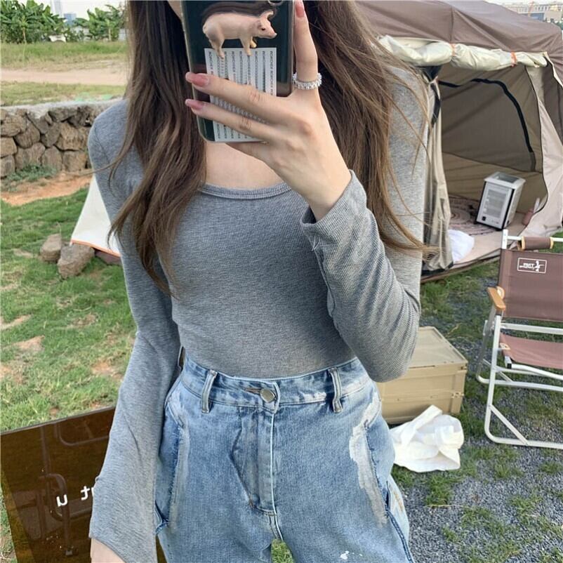 2021年春新作無地スリムショートラウンドネックTシャツオールマッチボトミングシャツ長袖レディーストップインタイド ロング スプリング 春物 Oネック ソリッドカラー TB2-6 TB2-665340141201