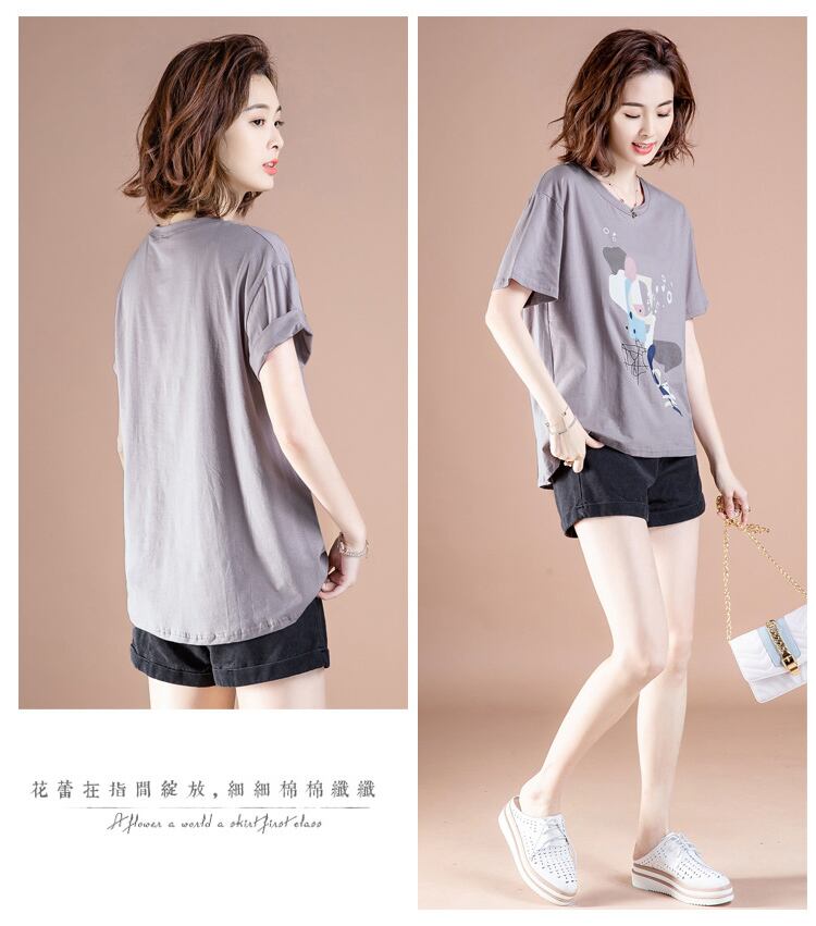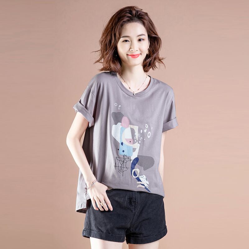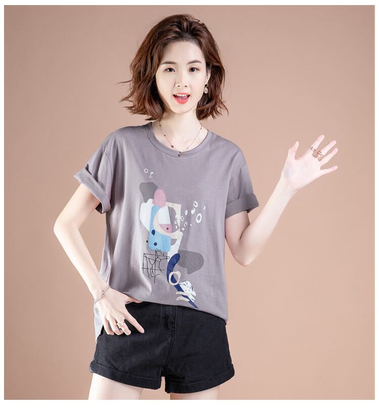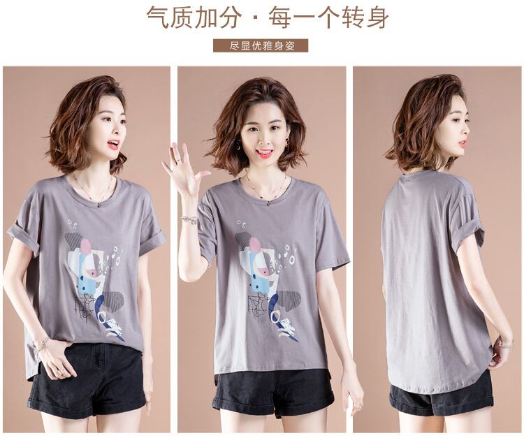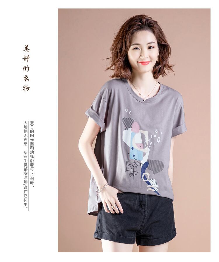 コットン200kgルーズラージサイズプリント半袖Tシャツファットmmレディースミドル丈コンピオネート2019サマートップ 大きめサイズ 夏物 TB2-11 TB2-1188255071165