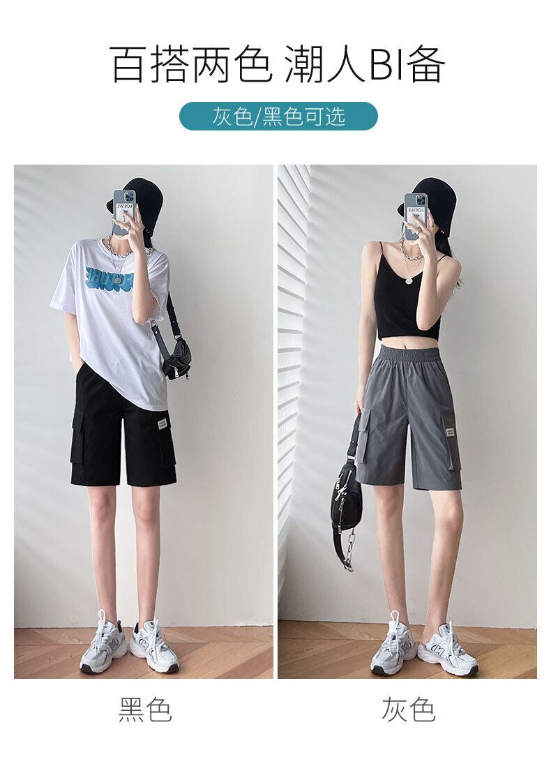 作業着ショーツ女性の夏の薄いセクションカジュアルブラックルーズストレート香港スタイルの5ポイントスポーツワイドレッグパンツインタイド サマー 夏物 ブルマー TM2-5 TM2-519719497150