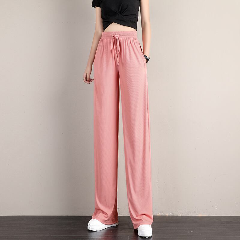 キュプロワイドレッグパンツレディースサマー薄ドレープローズストレートレッグハイウエストアイスシルクモップスポーツカジュアルパンツ 夏物 TM2-4 TM2-450405862744